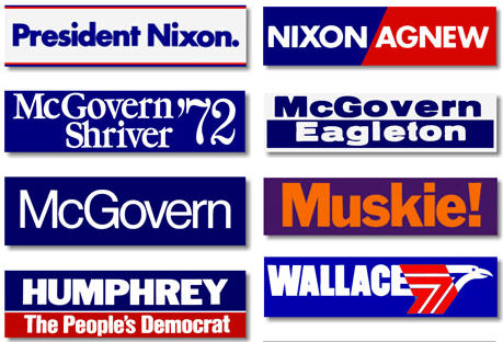 A survey of presidential campaign logos (mostly bumper stickers) since 1960.