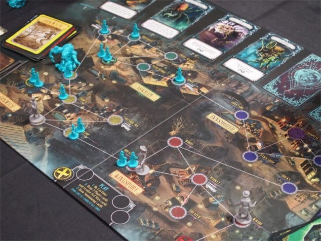 Best new discovery for me was Pandemic: Reign of Cthulhu, which wedges the cooperative Pandemic rules into scurrying about various Massachusetts towns (Arkham, Dunswich, etc.) trying to stamp out cultists, drive off Shoggoths, and close portals to the elder gods, even as those damned cultists and Shoggoths keep waking the Old Ones up and slowly driving you mad.