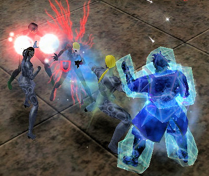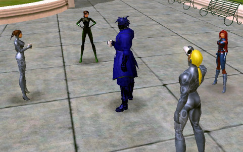 It was actually a very “balanced” AT set — tank, scrapper, blaster, controller, (occasional) defender. We ran the first story arc in Faultline — which is just gorgeous, both in terrain and in missions — and had a great time, except for one room where we were (a) a man down, and (b) a bit cocky about drawing aggro from everywhere.