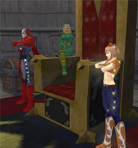 “Oh, poo, Exterry. You are just jealous because I got to sit in the big chair and you are afraid of going all spiney and damaging the very nice upholstery. Hey that gives me a very brilliant idea! Statesy! Think you could help us move this thing to our Super-Base? It would look very, very cute in my room!”