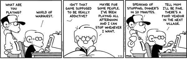 And … that was about it. The extent to which the SG played any role in my gaming was that the daily announcement, and other idle chatter, cluttered up my chat window. There was occasional news about task forces, all of which was geared toward a higher level than I.