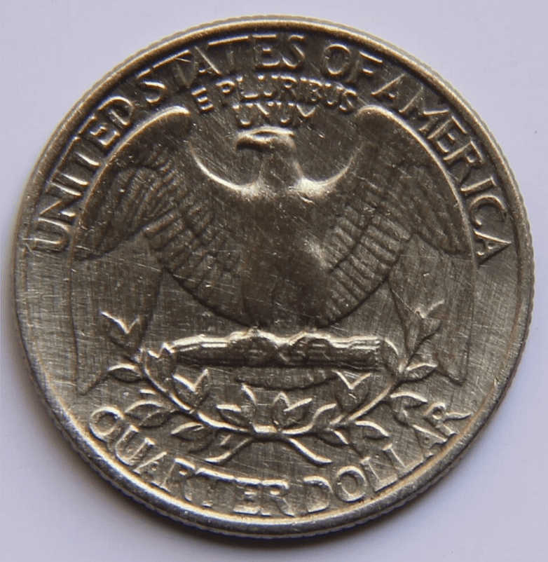 Okay, you might say, we have the eagle on other coins. The classic quarter has on its reverse the seal of the US, showing an eagle. No problem. The eagle is sitting there holding a bundle of arrows — but upon some lovely olive branches. We’re ready to fight, it says, but we love peace.